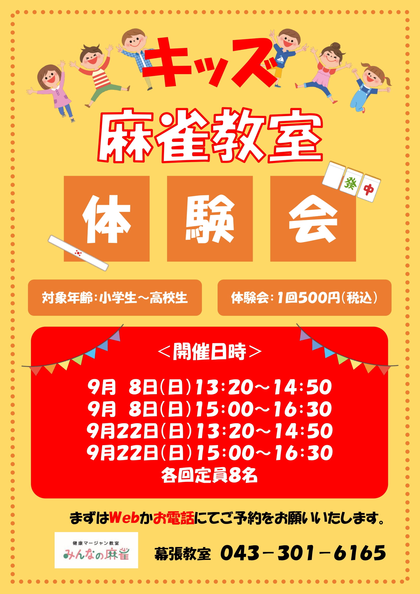 - 【幕張】2024年9月 子供麻雀教室 体験会スケジュール