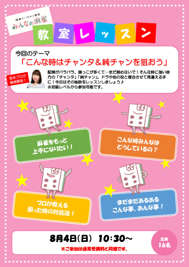 宮本プロ特別レッスン「こんな時はチャンタ&純チャンを狙おう」