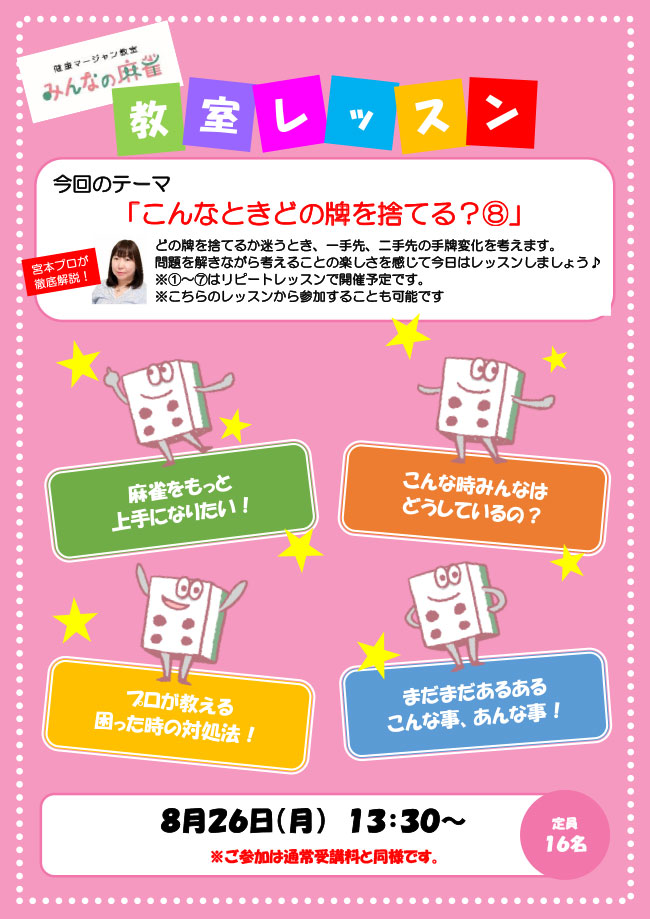 宮本プロ特別レッスン「こんなとき、どの牌を捨てる? ⑧」