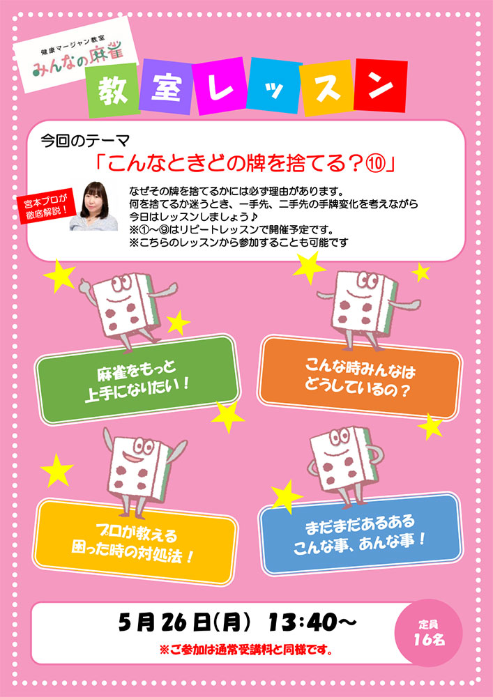 宮本プロ特別レッスン「こんなとき、どの牌を捨てる?⑩」