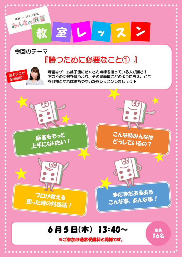 今回は、勝てる麻雀が打てるようにレッスンしましょう♪