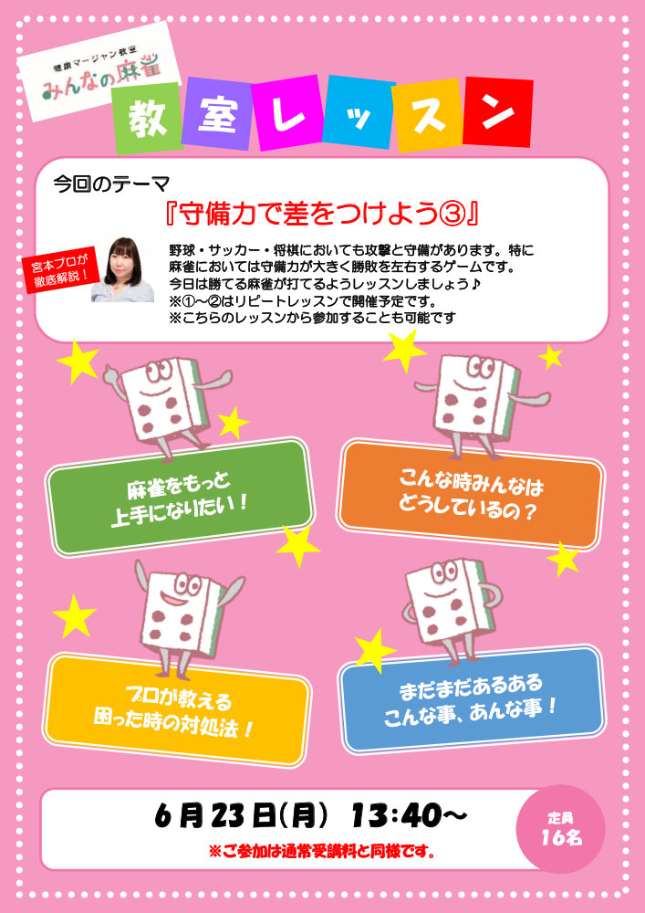 アガりの回数を競うより、その局面ごとにどのように考え、どこを目標とすれば勝ちやすいかをレッスンしましょう♪