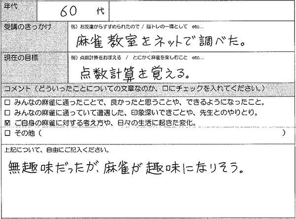 足立区にお住まいの60代男性の受講生さまからアンケートをいただきました。