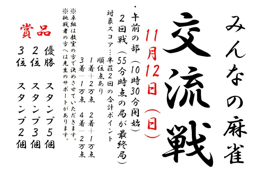 交流戦は、何切る?・何待ち?・何点?など困ったら先生に質問してもOKの麻雀大会です‼