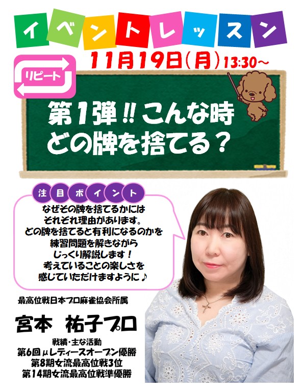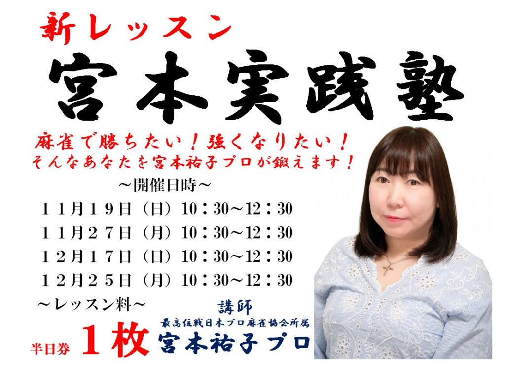 6月からスタートした新レッスンの宮本実践塾は、『麻雀で勝ちたい‼』『麻雀が強くなりたい‼』という方を最高位戦女流Aリーガーの宮本祐子プロが直々に麻雀の腕を鍛えてくれるレッスンです‼