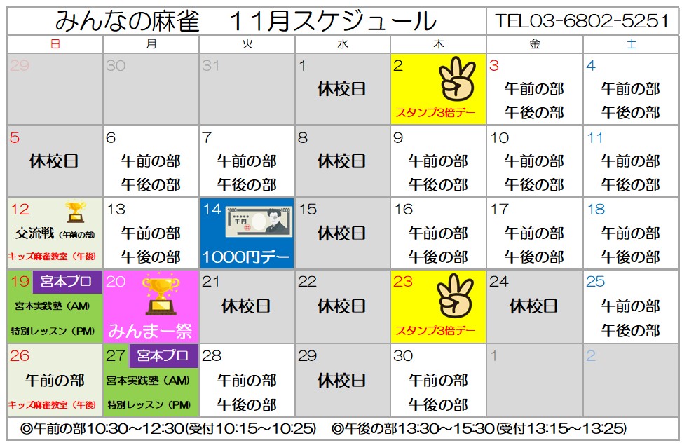 11/20~11/26の綾瀬教室スケジュールをご案内いたします。