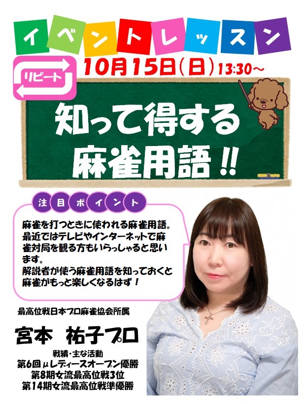 6月からスタートした新レッスンの宮本実践塾は、『麻雀で勝ちたい‼』『麻雀が強くなりたい‼』という方を最高位戦女流Aリーガーの宮本祐子プロが直々に麻雀の腕を鍛えてくれるレッスンです‼