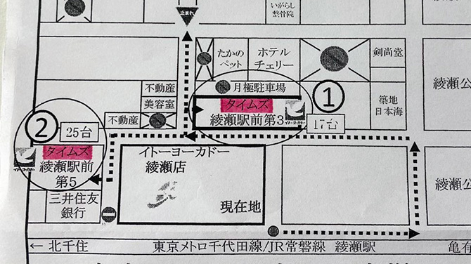イトーヨーカドー綾瀬店 提携駐車場地図