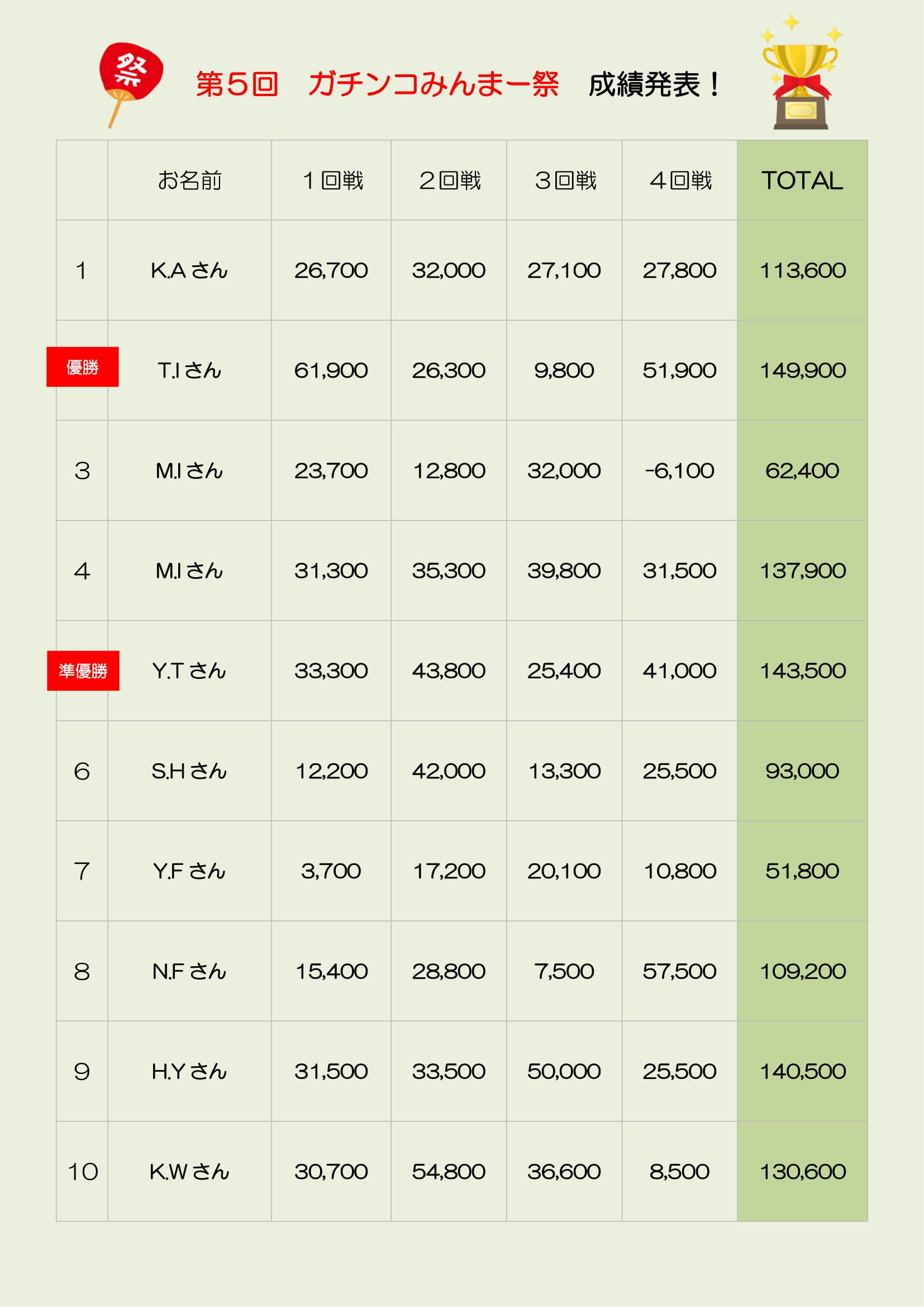 <幕張>第5回ガチンコみんまー祭成績発表!