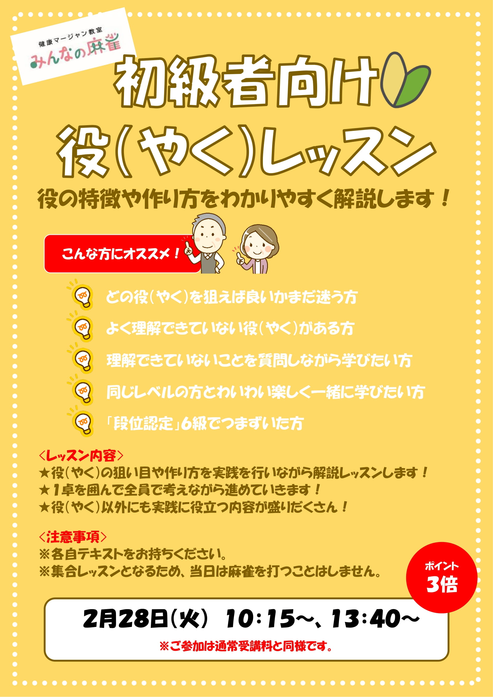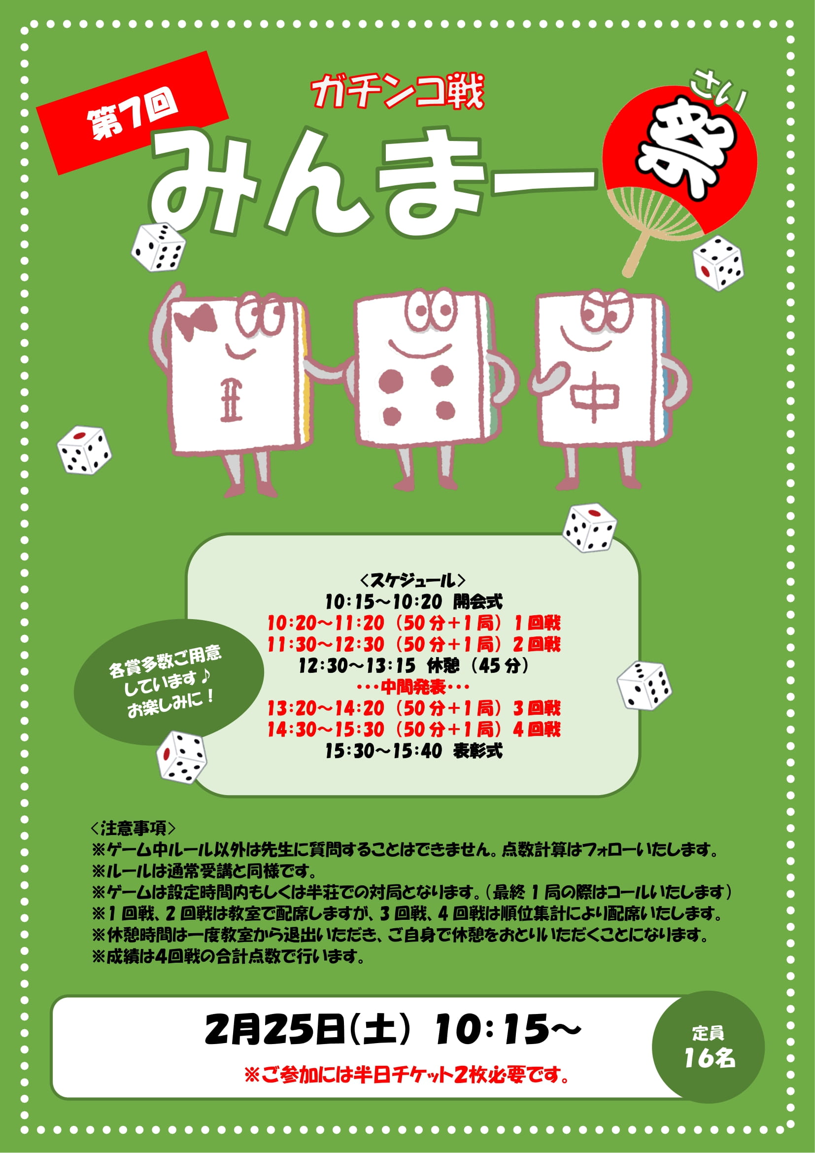 千葉県千葉市花見川区のイトーヨーカドー幕張店2Fにある健康麻雀教室「みんなの麻雀」幕張教室です。「日本一女性と初心者に優しい、笑顔があふれる教室」がコンセプト。詳しくは⇒こちら。
