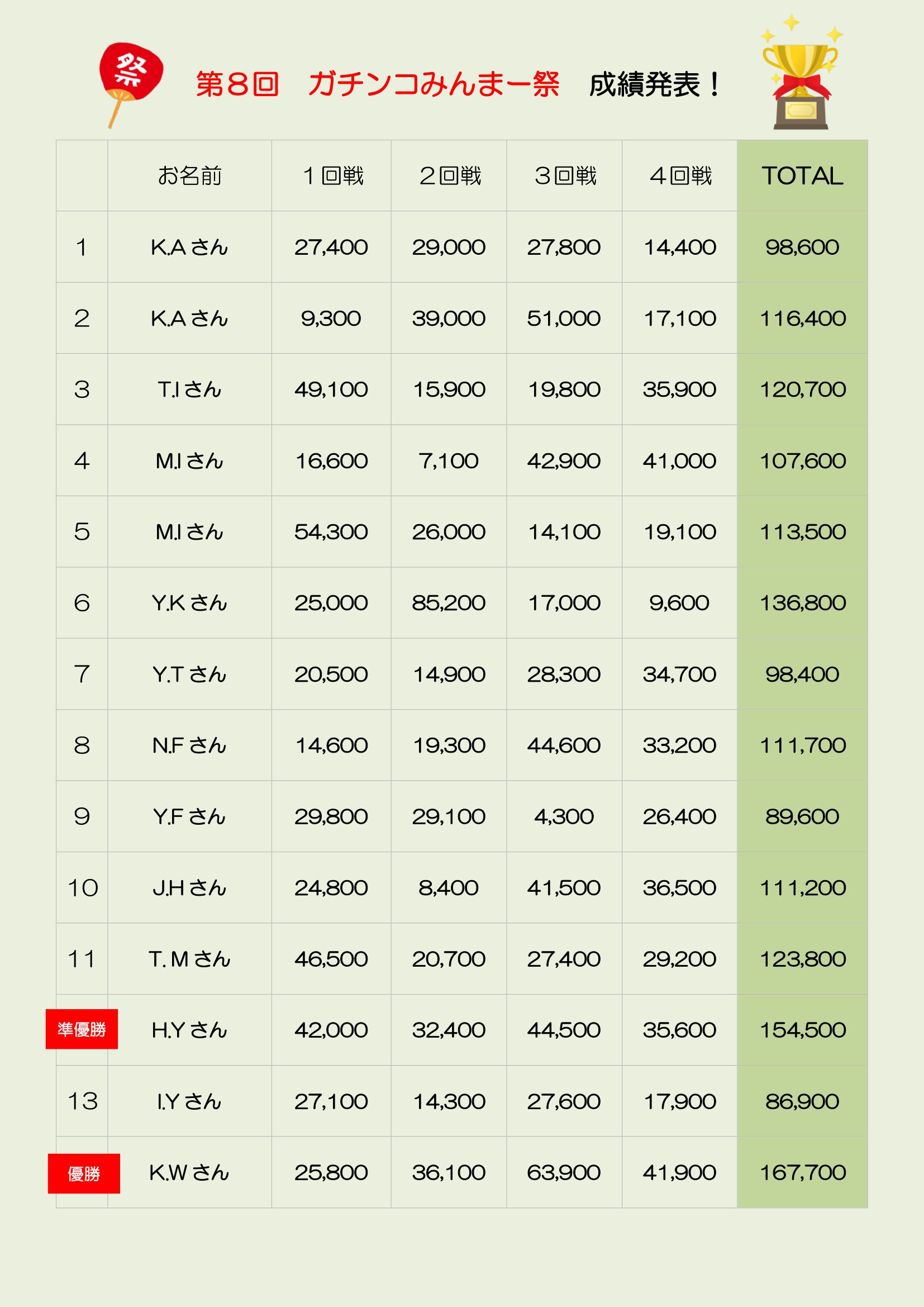 - <幕張>第8回ガチンコみんまー祭成績発表!