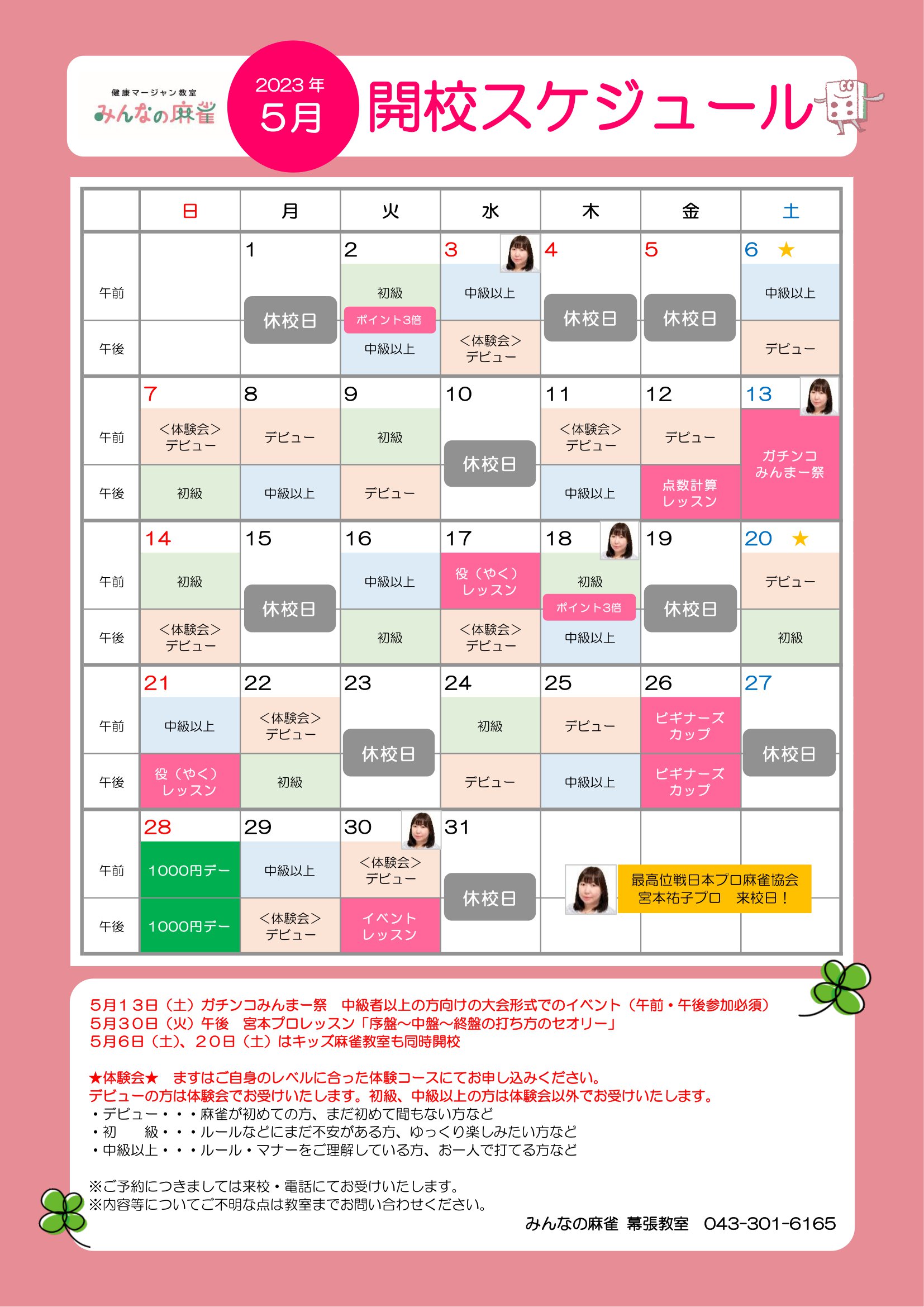 幕張教室では5月もみなさんに楽しんでいただけるレッスンやイベント盛りだくさんで、みなさまのお越しを心よりお待ちしております!