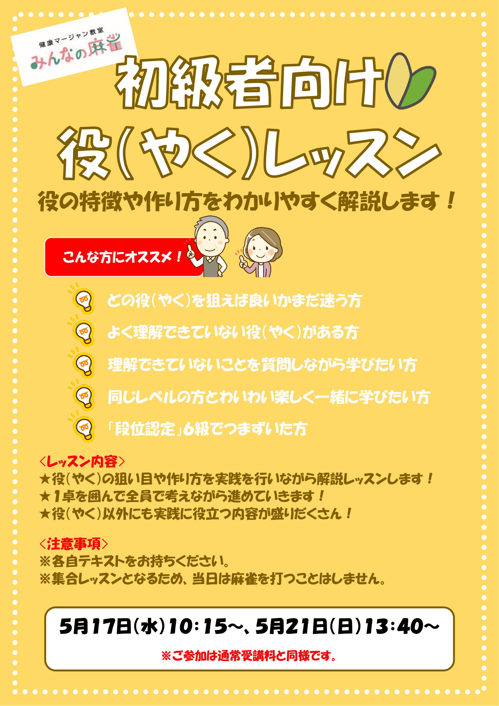 千葉県千葉市花見川区のイトーヨーカドー幕張店2Fにある健康麻雀教室「みんなの麻雀」幕張教室です。「日本一女性と初心者に優しい、笑顔があふれる教室」がコンセプト。詳しくは⇒こちら。