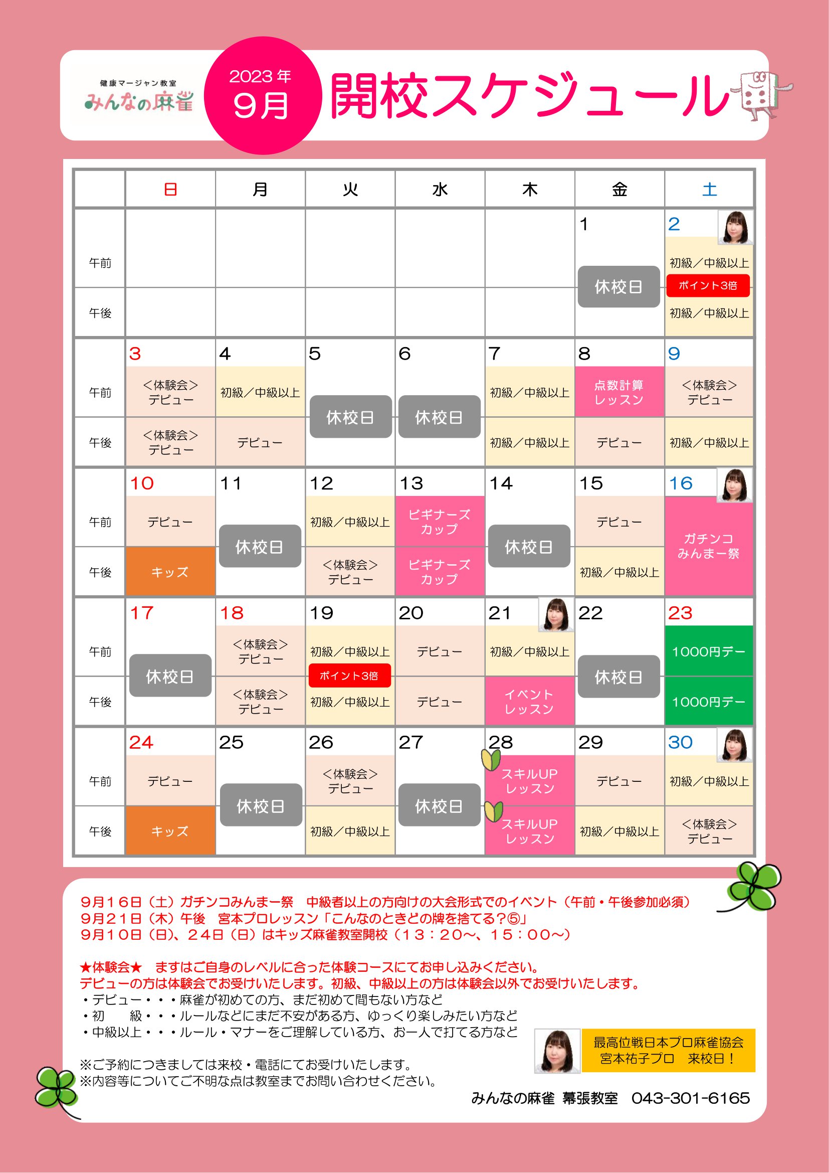 幕張教室では9月もみなさんに楽しんでいただけるレッスンやイベント盛りだくさんで、みなさまのお越しを心よりお待ちしております!
