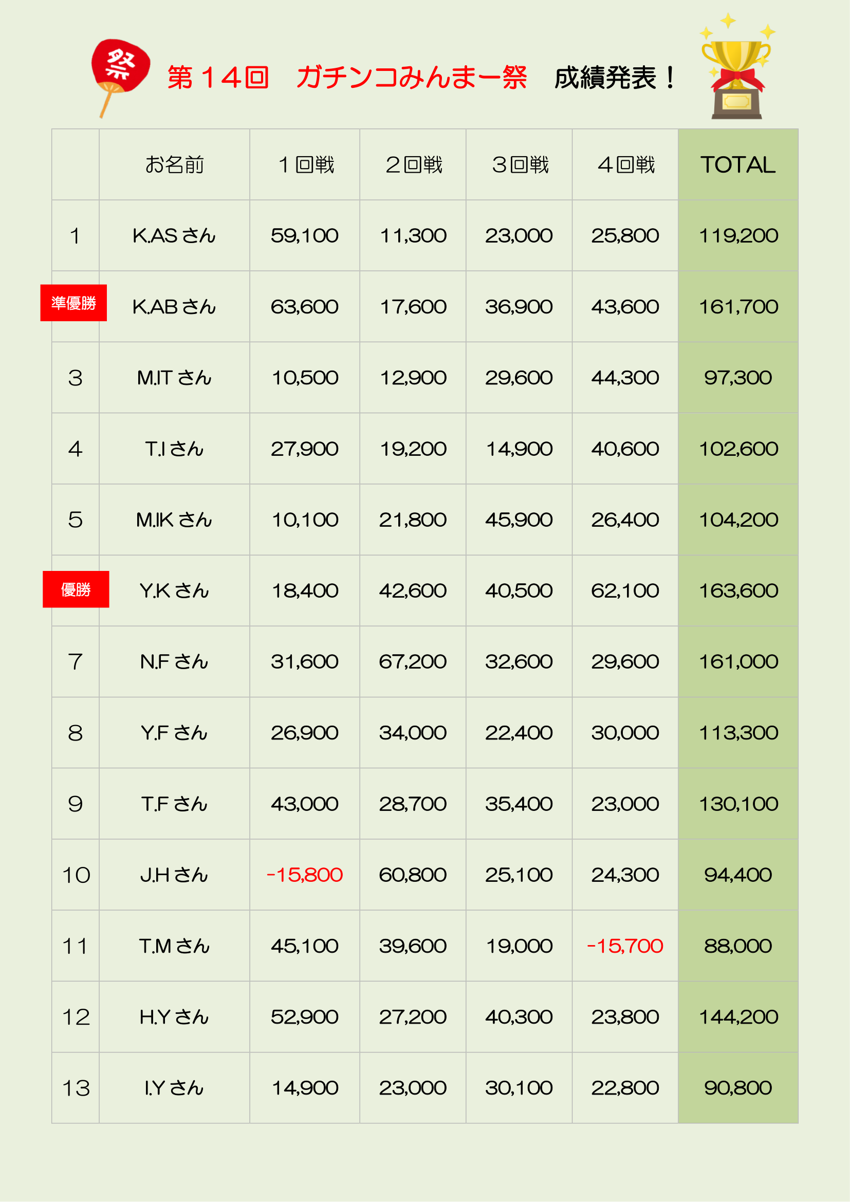 - <幕張>第14回ガチンコみんまー祭成績発表!