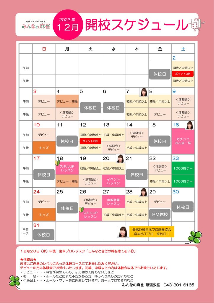 幕張教室では12月もみなさんに楽しんでいただけるレッスンやイベント盛りだくさんで、みなさまのお越しを心よりお待ちしております!