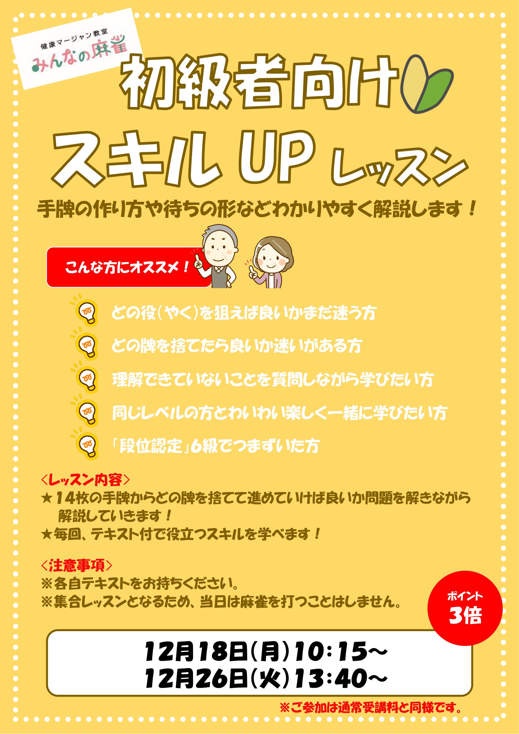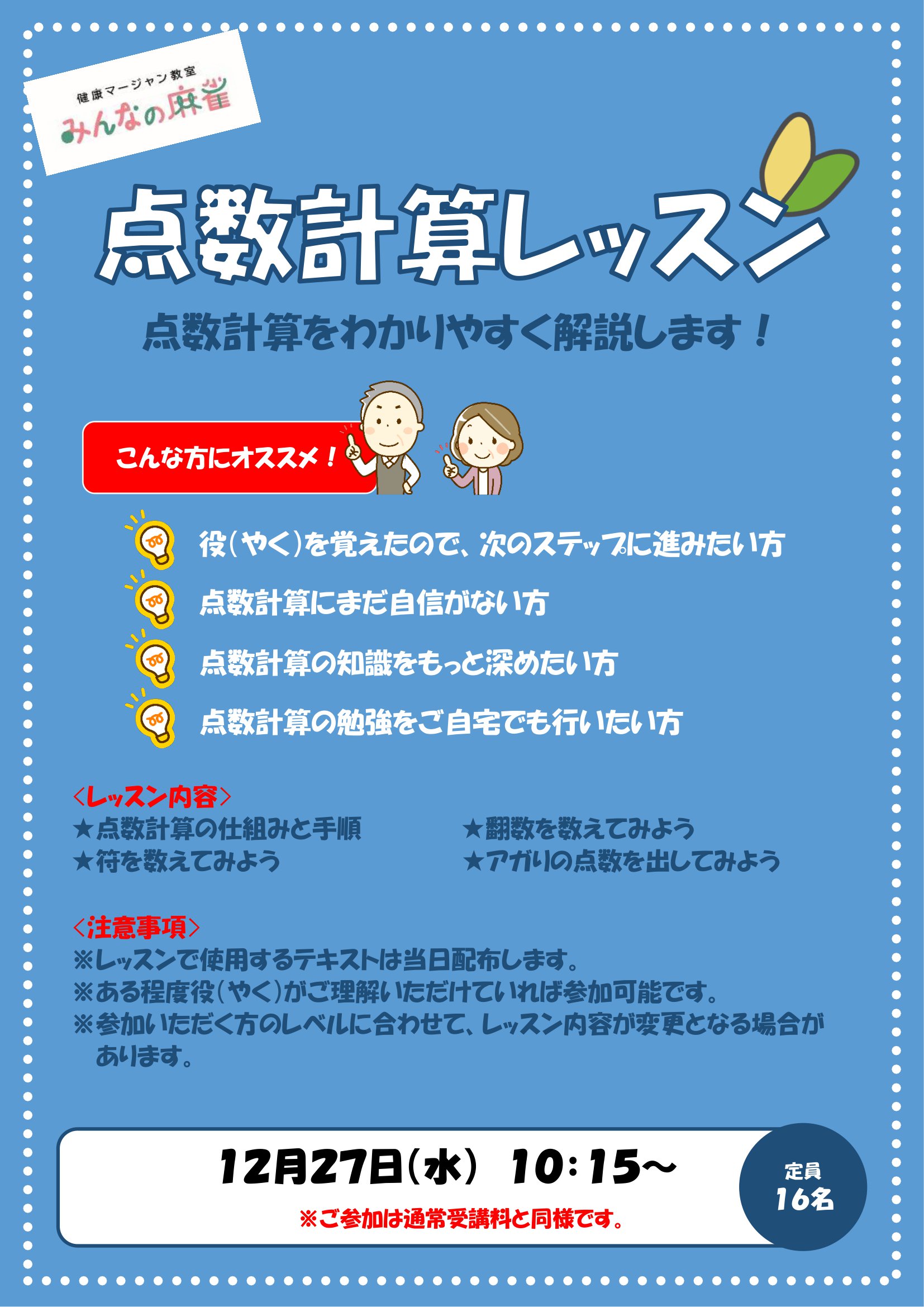 千葉県千葉市花見川区のイトーヨーカドー幕張店2Fにある健康麻雀教室「みんなの麻雀」幕張教室です。「日本一女性と初心者に優しい、笑顔があふれる教室」がコンセプト。詳しくは⇒こちら。
