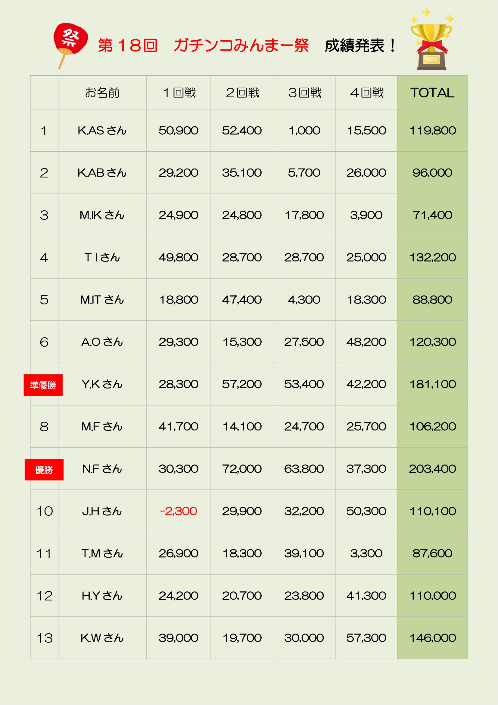 - <幕張>第18回ガチンコみんまー祭成績発表!