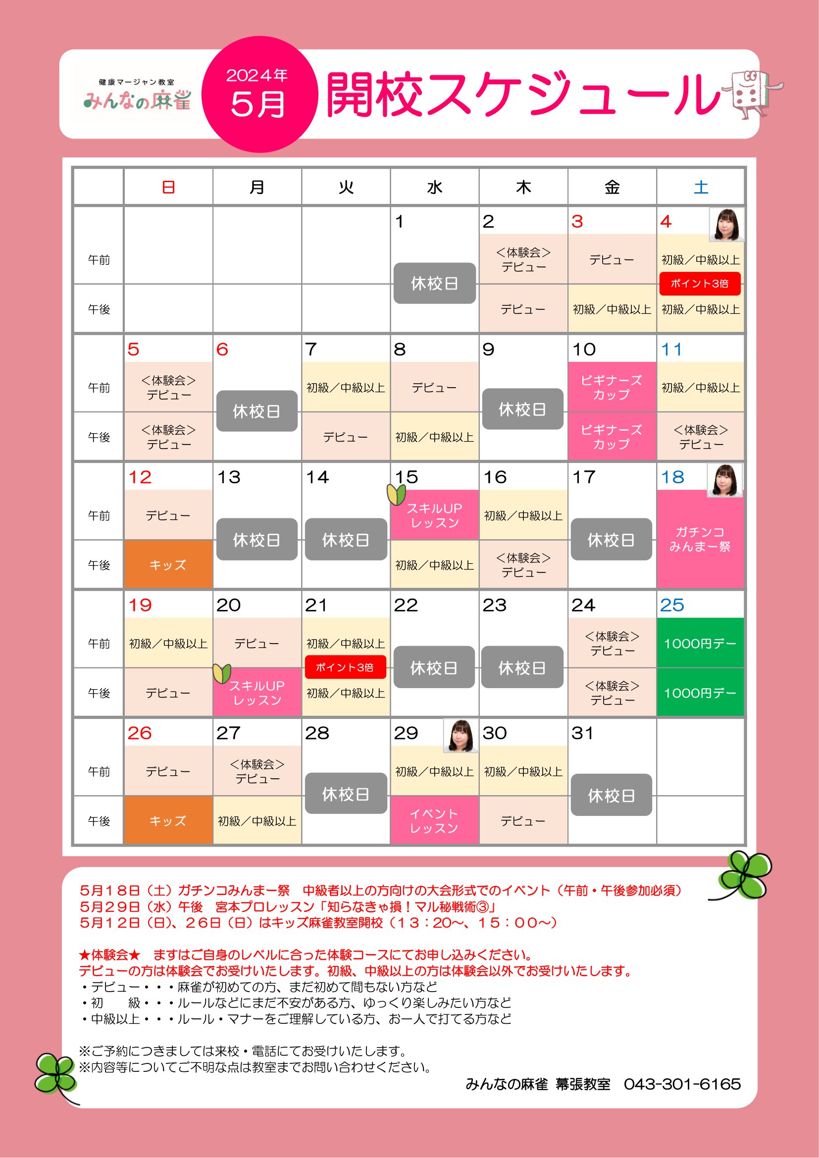 幕張教室では5月もみなさんに楽しんでいただけるレッスンやイベント盛りだくさんで、みなさまのお越しを心よりお待ちしております!