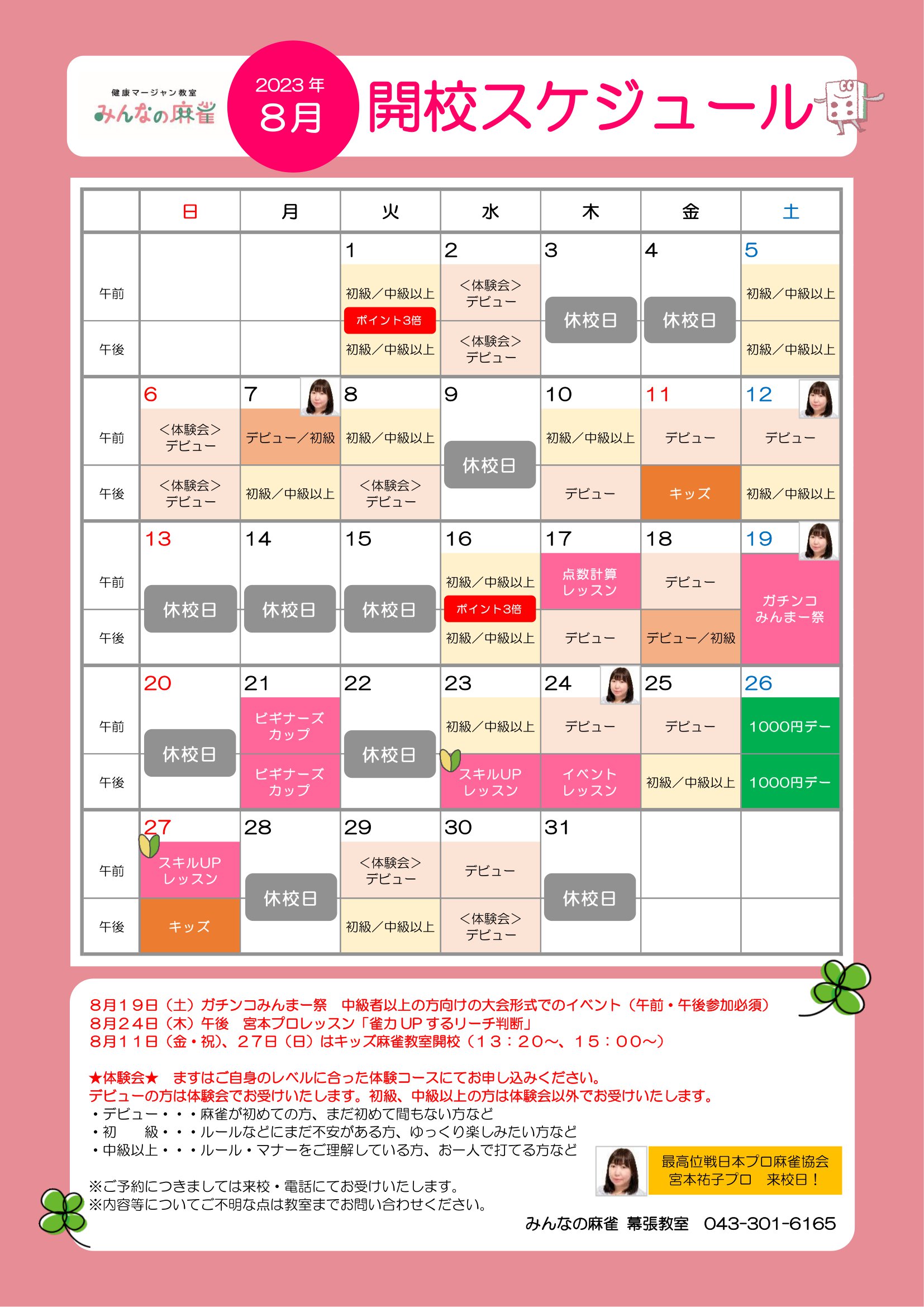 幕張教室では8月もみなさんに楽しんでいただけるレッスンやイベント盛りだくさんでみなさまのお越しを心よりお待ちしております!