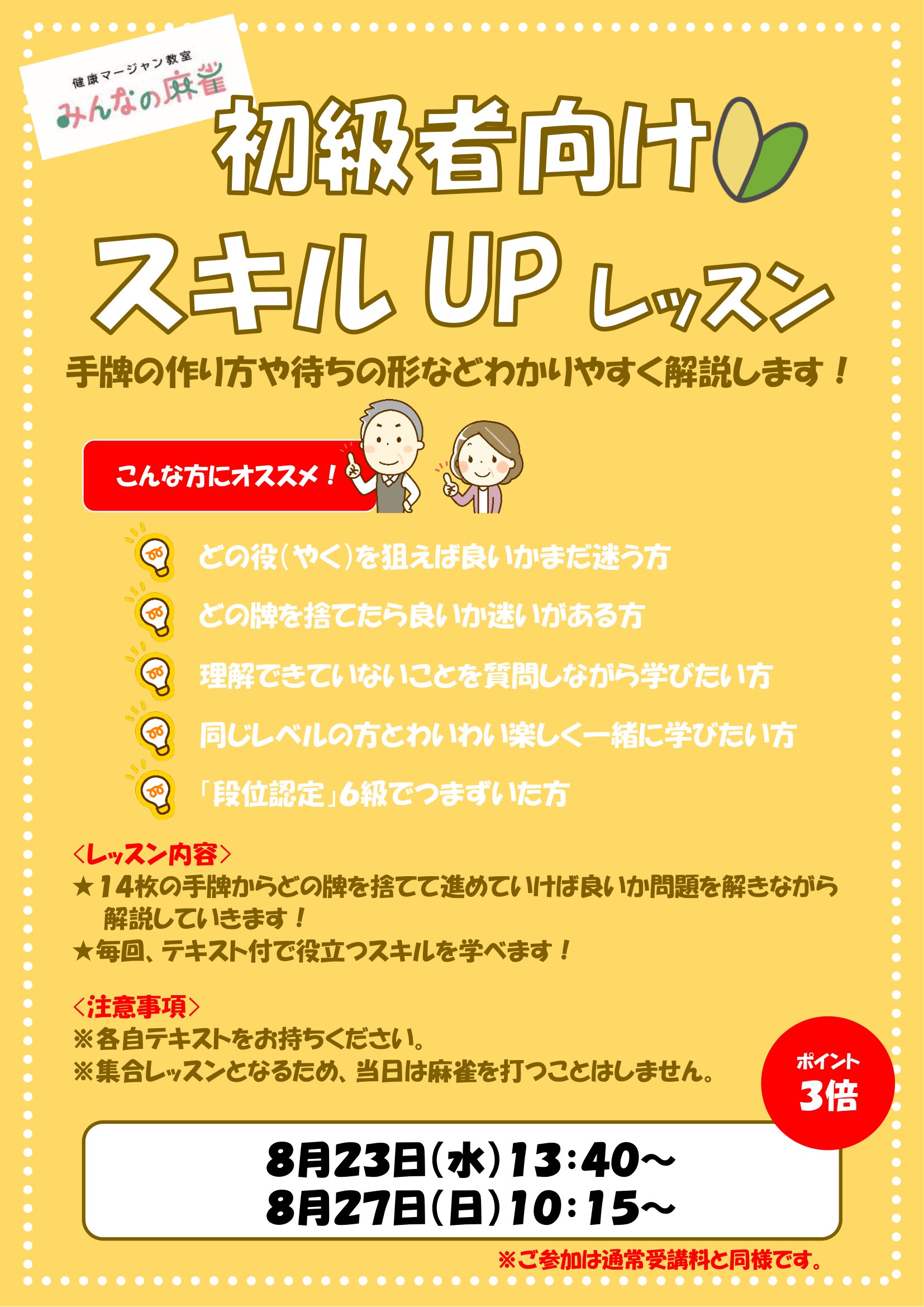 千葉県千葉市花見川区のイトーヨーカドー幕張店2Fにある健康麻雀教室「みんなの麻雀」幕張教室です。「日本一女性と初心者に優しい、笑顔があふれる教室」がコンセプト。詳しくは⇒こちら