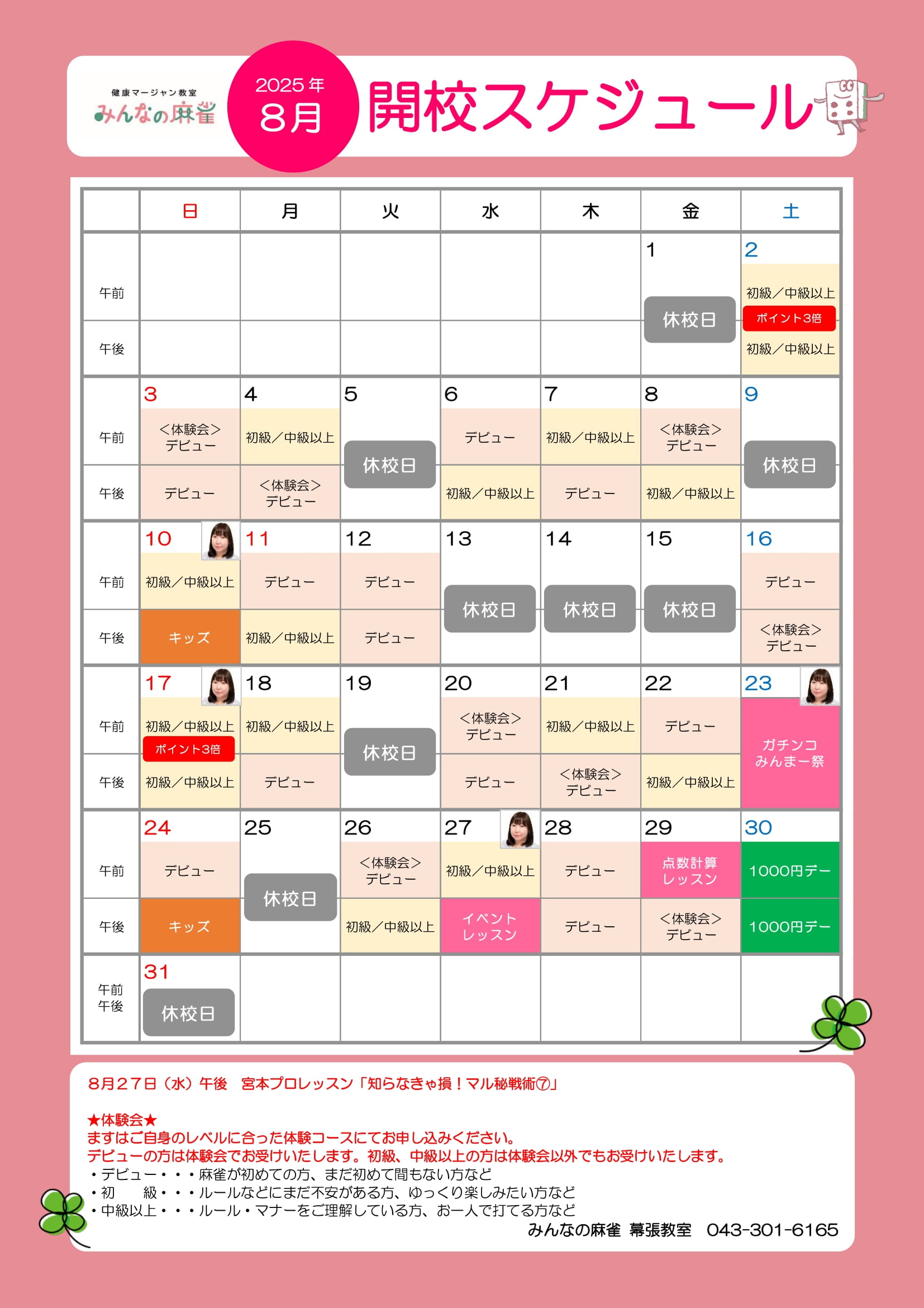 もちろん、麻雀が初めてではない方でも体験可能となっておりますので、開校スケジュールよりレベルを確認のうえ、ぜひご予約ください。
