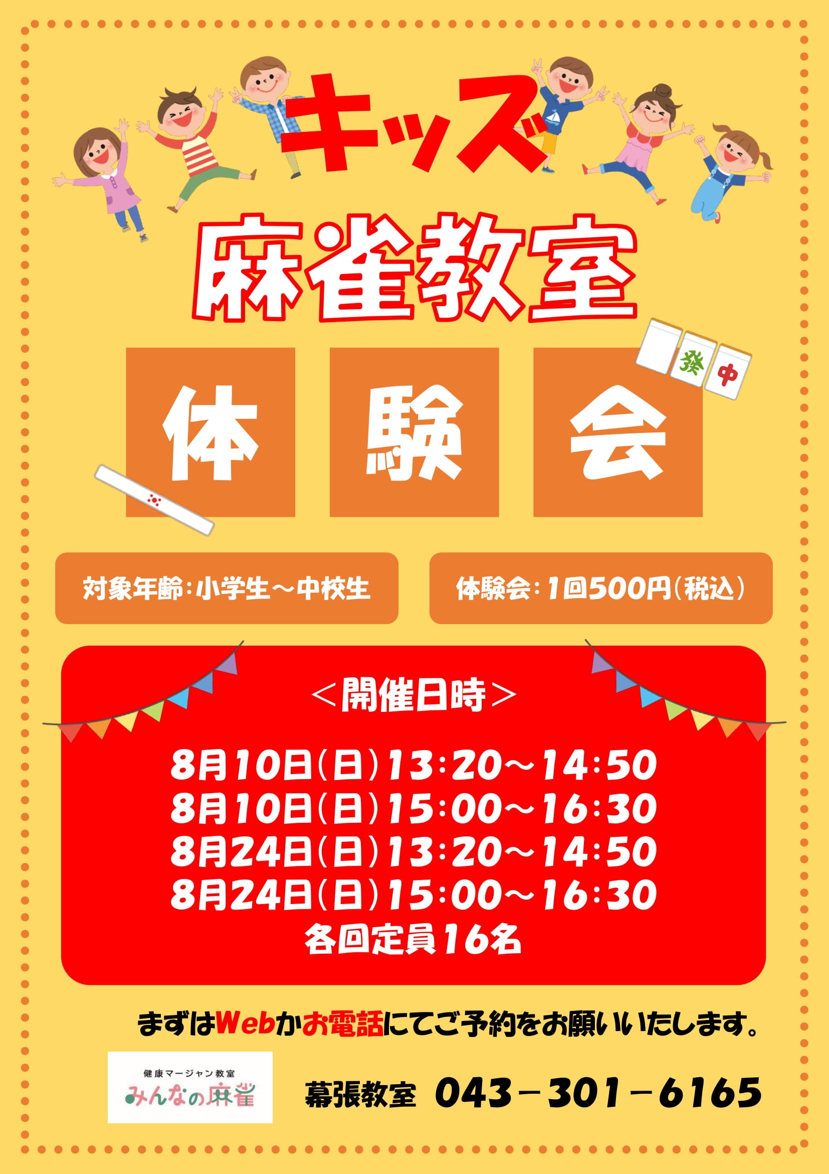 【幕張】2025年8月 子供麻雀教室 体験会スケジュール