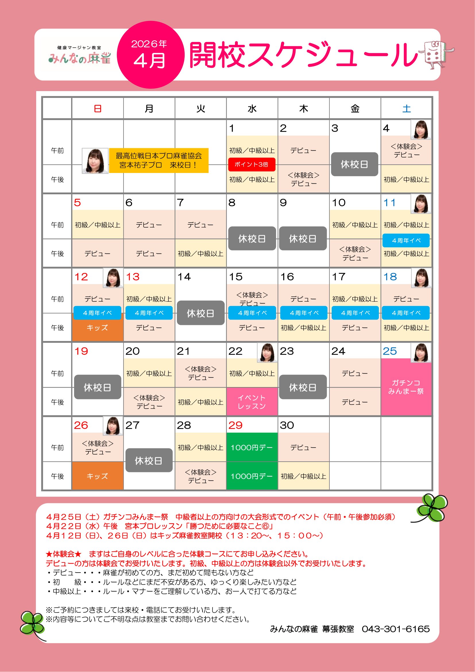 - 【幕張】2026年4月の教室スケジュール