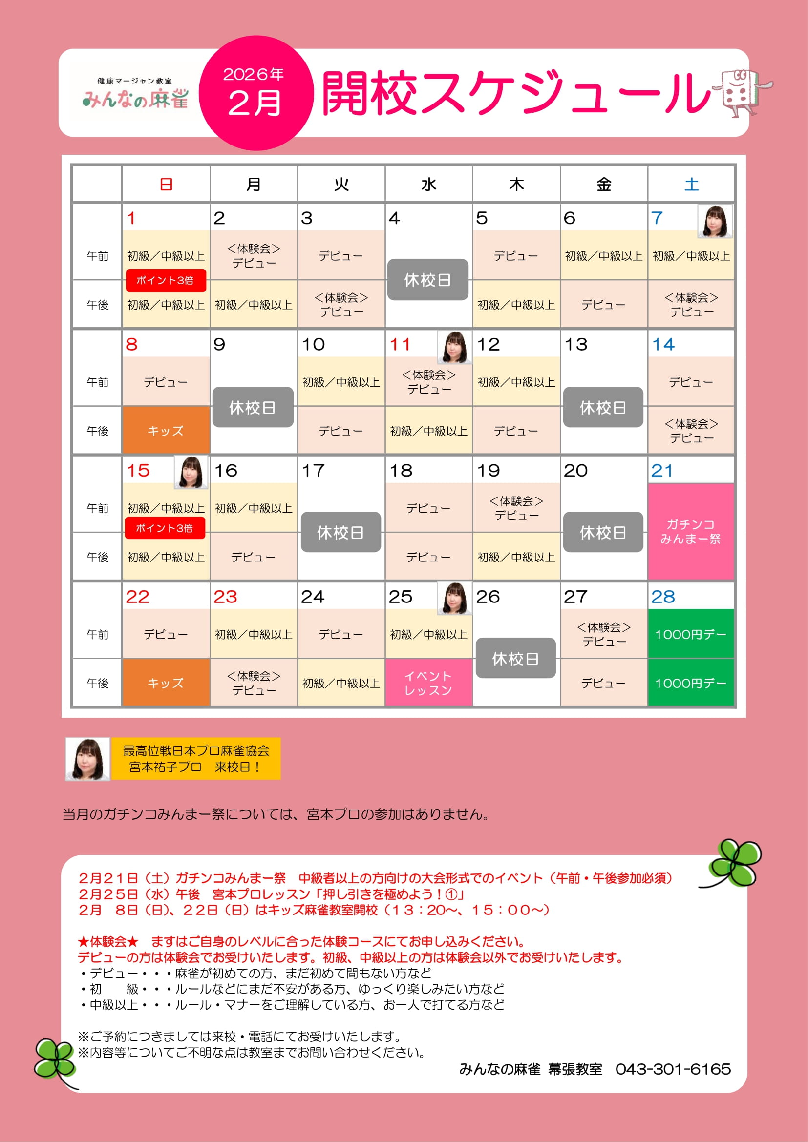 【幕張】2026年2月の教室スケジュール